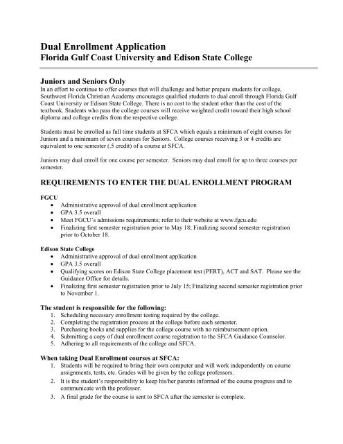 Dual Enrollment Application Southwest Florida Christian Academy